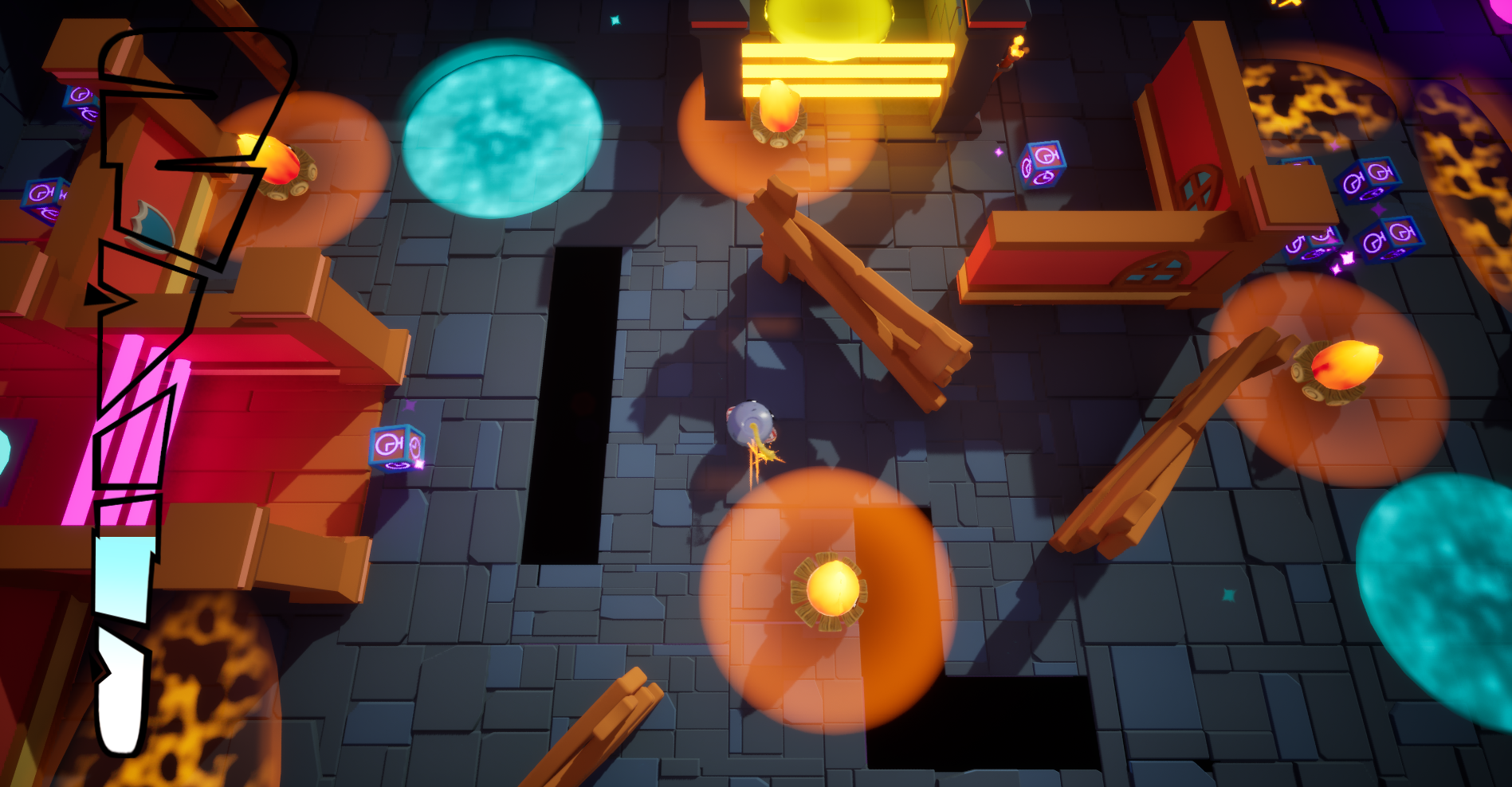 You can move in any direction and use a dash. Dashing lets you quickly get over obstacles, break fragile walls and eliminate enemies.
